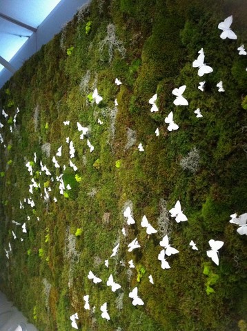 A la demande de Kick Off Event, à l'occasion de la Convention Pernod Ricard sur l'ïle des Embiez 2015, Clorofil events a réalisé pour une marque de Champagne Perrier Jouët un mur végétal éphémère composé de mousses végétales fraîchement ramassée en variété.