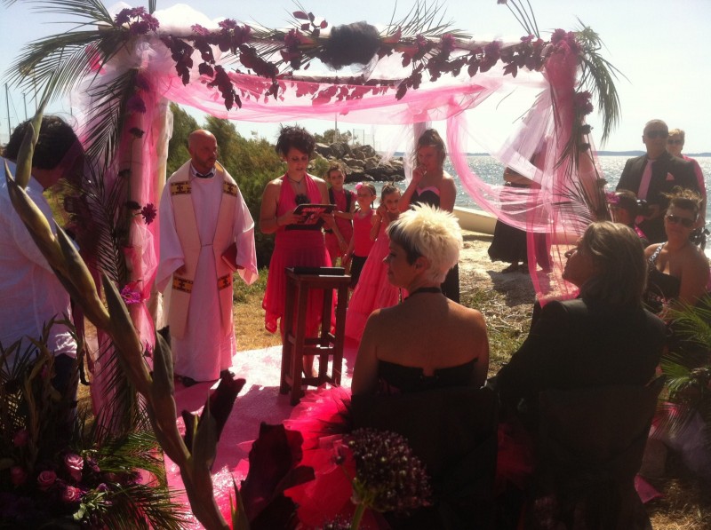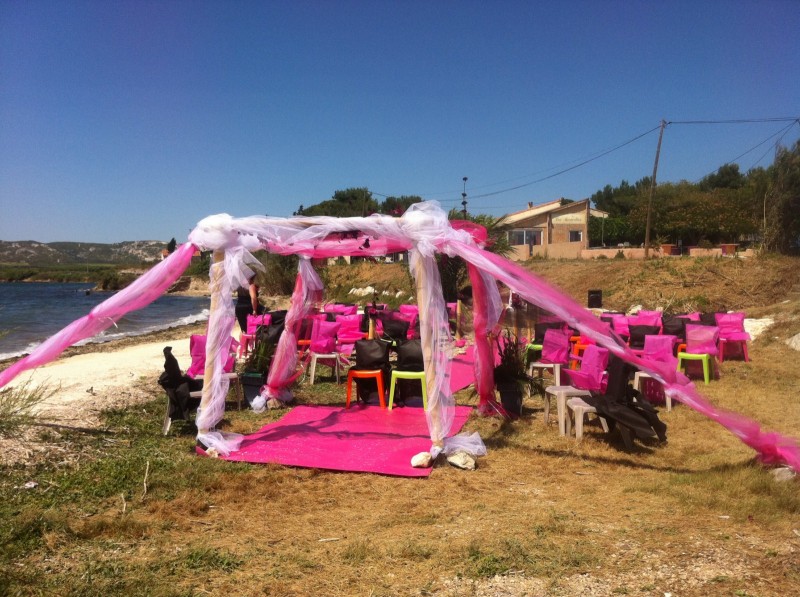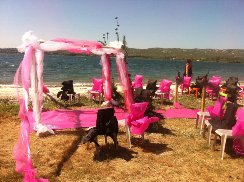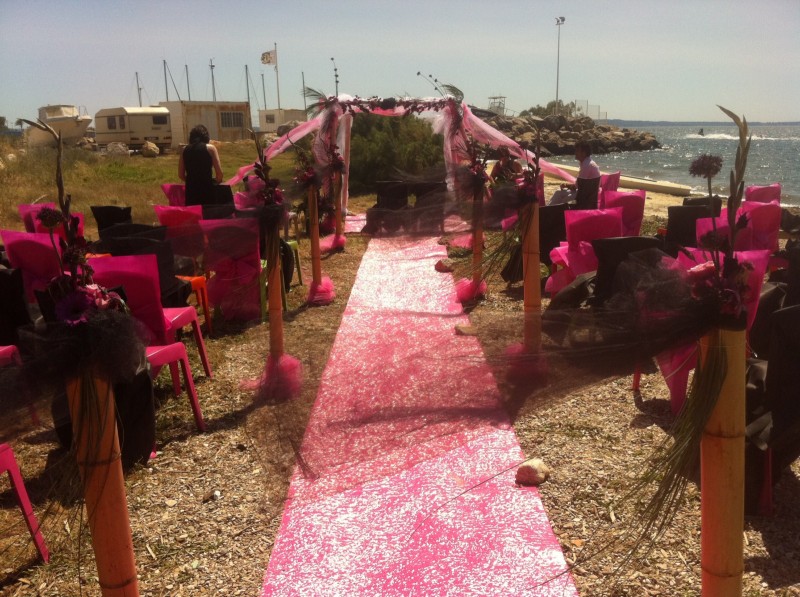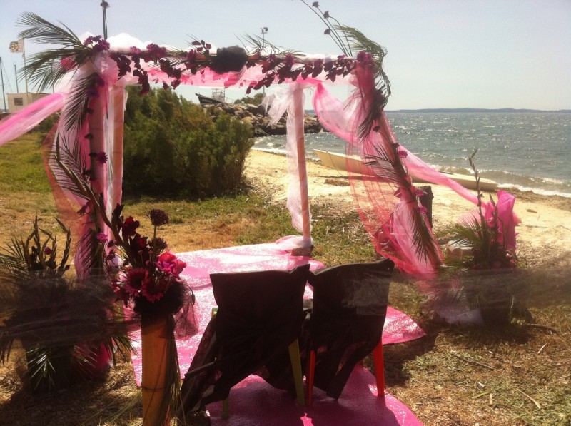 Mariage sur la plage de Berre L'Etang, mariage thème le rose