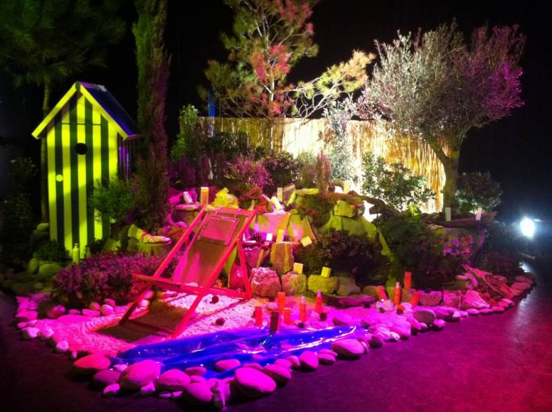 Nous créons sur mesure pour l'occasion un décor végétal vivant de scène dans l'esprit des calanques et des plages du sud de la Côte d'Azur.