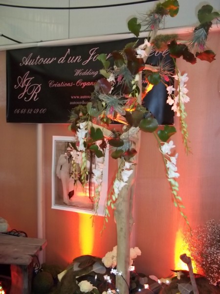 Ce stand du salon du mariage à Vitrolles a été conçu dans une athmosphère féérique boisée et naturelle.