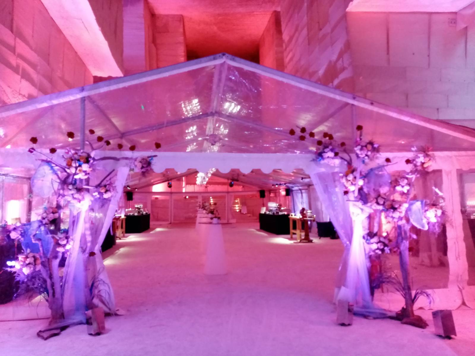 Plus de 500 roses remarquables sont nécessaires pour réaliser cette magnifique entrée de la tente de réception.