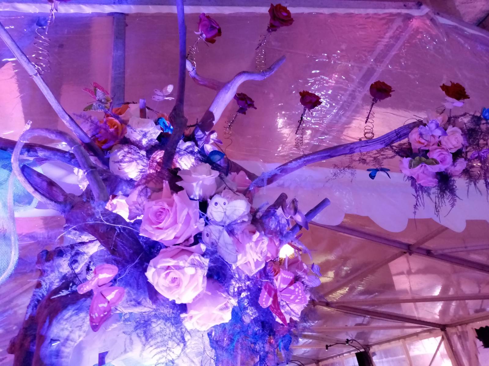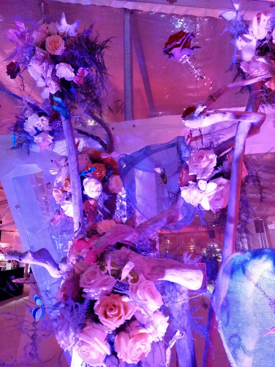 La dame aux fleurs de Dali et les papillons sont les symboles floraux qui ont inspirés cette création florale unique pour ce vernissage de Culturespaces 2020.