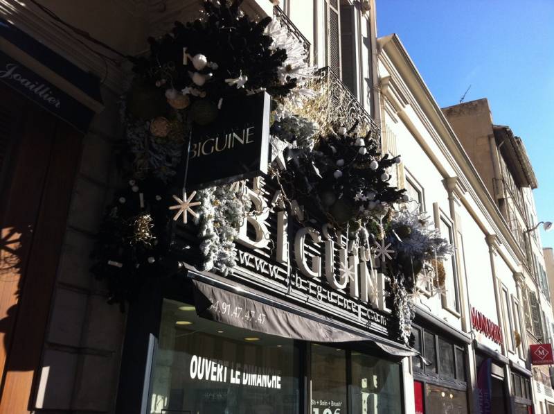 Clorofil Events aménage votre façade et vitrine de noel avec des décorations dans vos couleurs sur Marseille et Aix en provence PACA