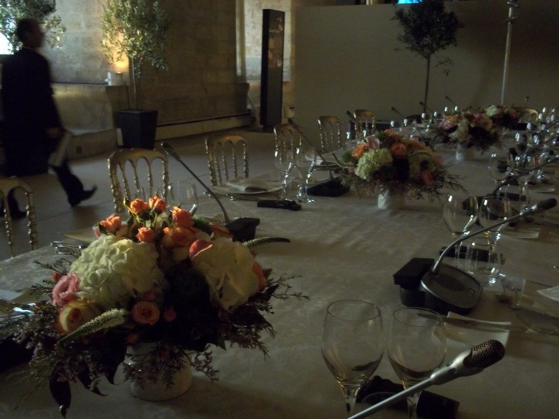 l'Elysée a commandé la décoration florale de la table de réception.