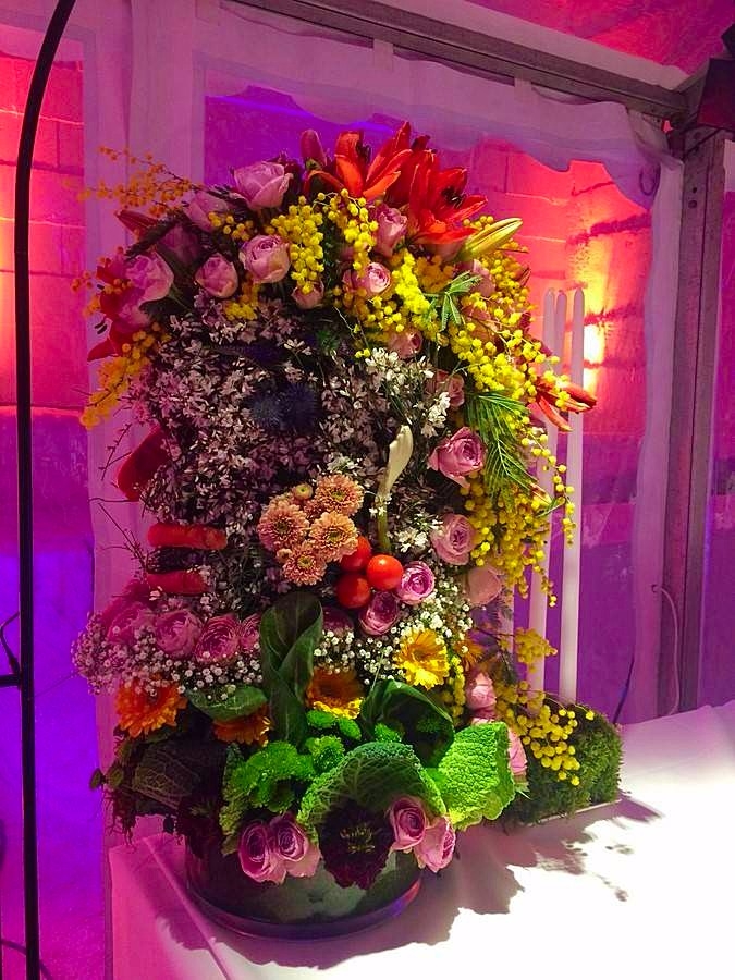 clorofilevents a décoré les buffets du traiteur "Helen traiteur" de fleurs dans le thème du tableau du printemps de la série des 4 saisons du peintre Arcimboldo.