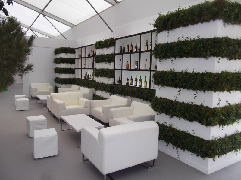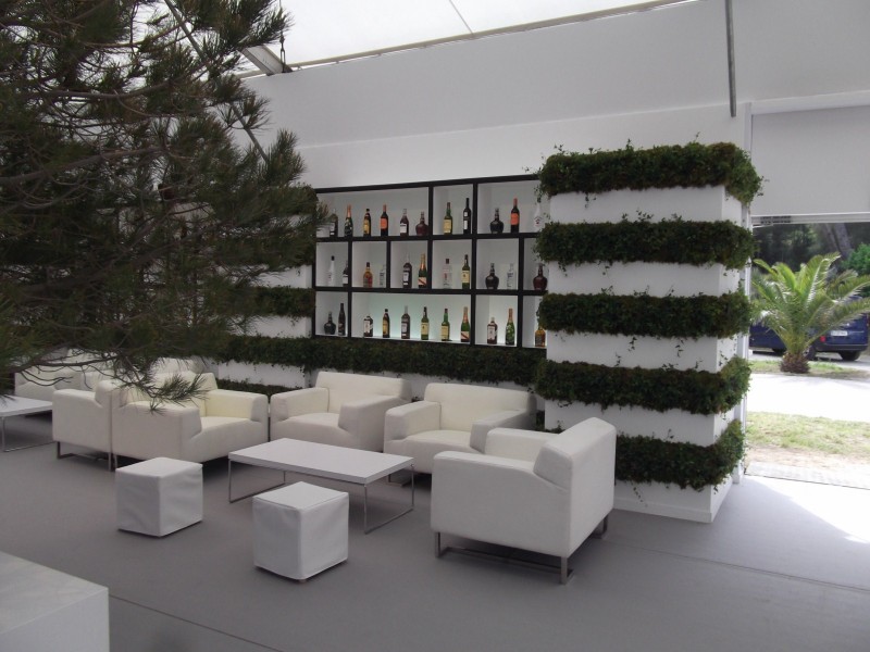 Salon Ricard Ile des Embiez Clorofil events a crée sur mesure un mur végétal à base de lierres vivants et de mousses végétales pour bar stand