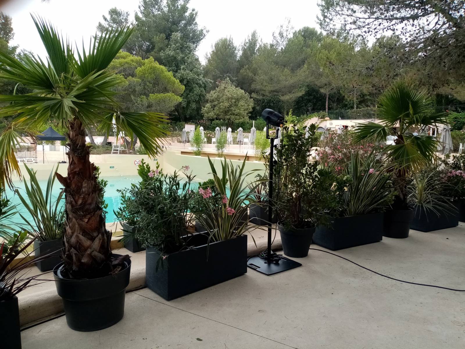 Vous devez fermer et protéger vos invités dans un espace végétalisé tout en procurant une ambiance de standing digne de l'image que reflète votre entreprise. Clorofil events conçoit des modules de jardinières de plantesen location variées selon vos styles et les effets protecteurs et ou intimistes recherchés. Dans cet événement, le client était soucieux de cerner de façon aéré un espace de buffet devant recevoir 700 personnes. Le scénographe Philippe Grossel a proposé un mixage de plantes méditerranéennes, de palmiers et bambous. Les jardinières discrétes mesurent un mètre de longueur de 1 mètre et 40 cm de largeur, de ce fait elles sont très maniables et modulabes pendant votre événement selon l'évolution des espaces. Ce service d'assistance est possible en option. Les plantes dans ce thème ont un but esthétique, mais si vous avez besoin de séparation en haie, les jardinières en location de plantes sont aussi proposées avec des bambous de 2 mètres minimum. Le service comprend: la location au tarif dégressif pour une durée de 1 à 4 jours, avec le jour de la livraison, d'installation et d'enlèvement en fin d'événement. Philippe se fera une joie de venir visiter votre lieu afin d'étudier les possibilités qu'offrent les plantes selon vos besoins. Après les prises en photos sur site, des plans d'organisations et des plans en photo-montages sont élaborés avec votre mobilier et les entrées des espaces.