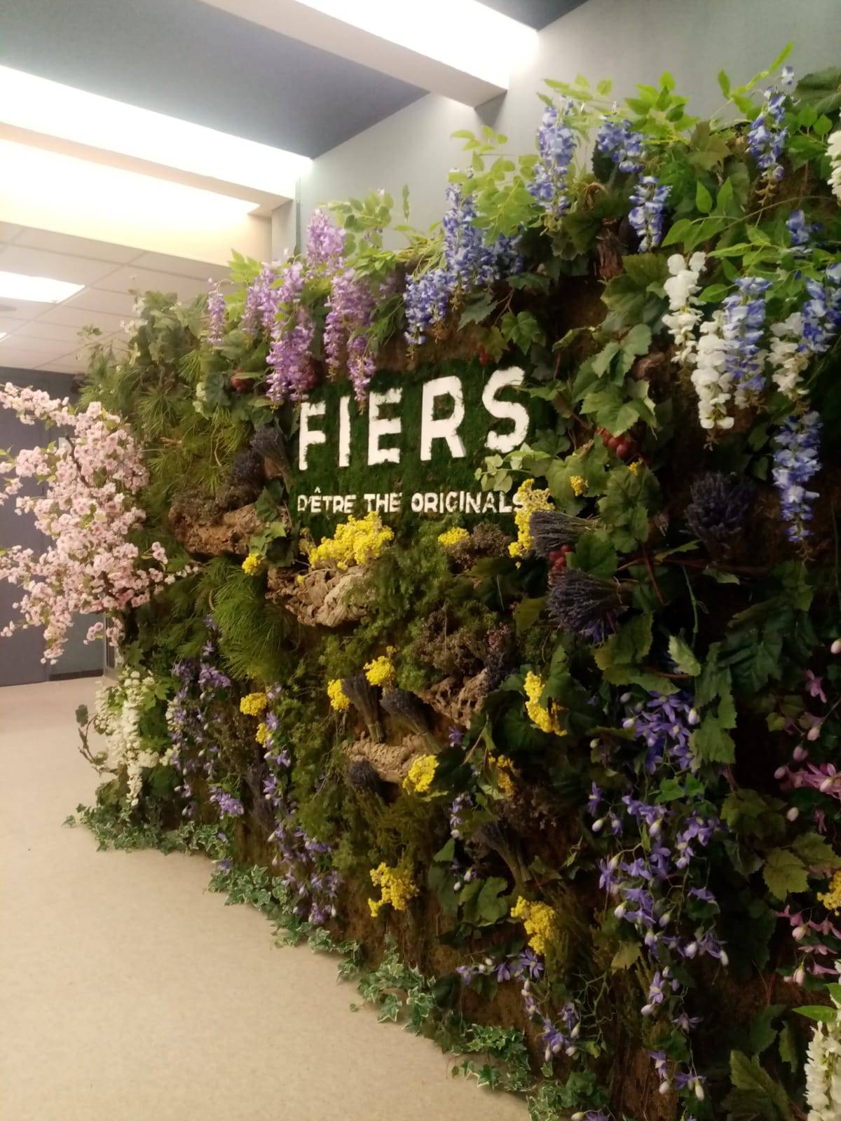 Le mur de fleur à la location a été réalisé sur une base autoportante entièrement recouverte de mousse végétale naturelle en plaque ponctuée harmonieusement de fleurs naturelles, séchées et artificielles pour obtenir ce magnifique résultat qui a conquis toutes personnes de l'entreprise hostelières.
