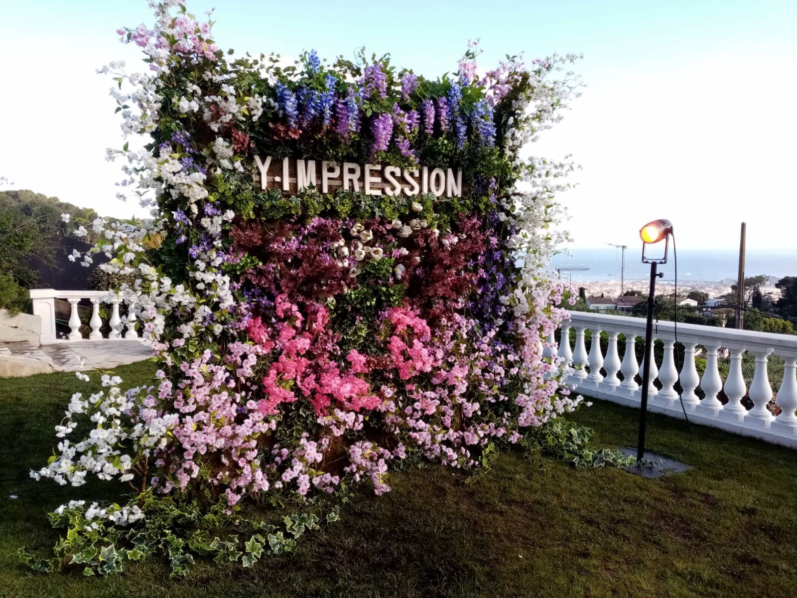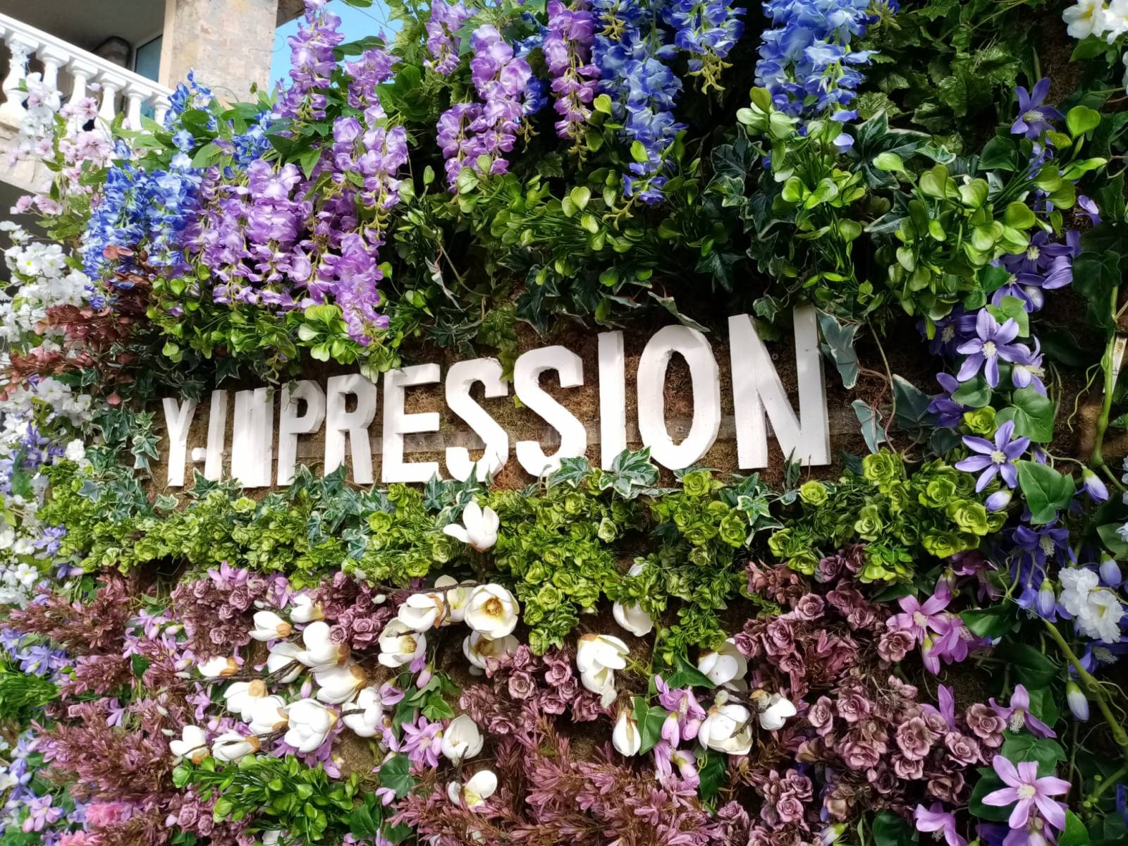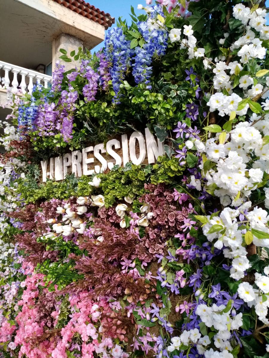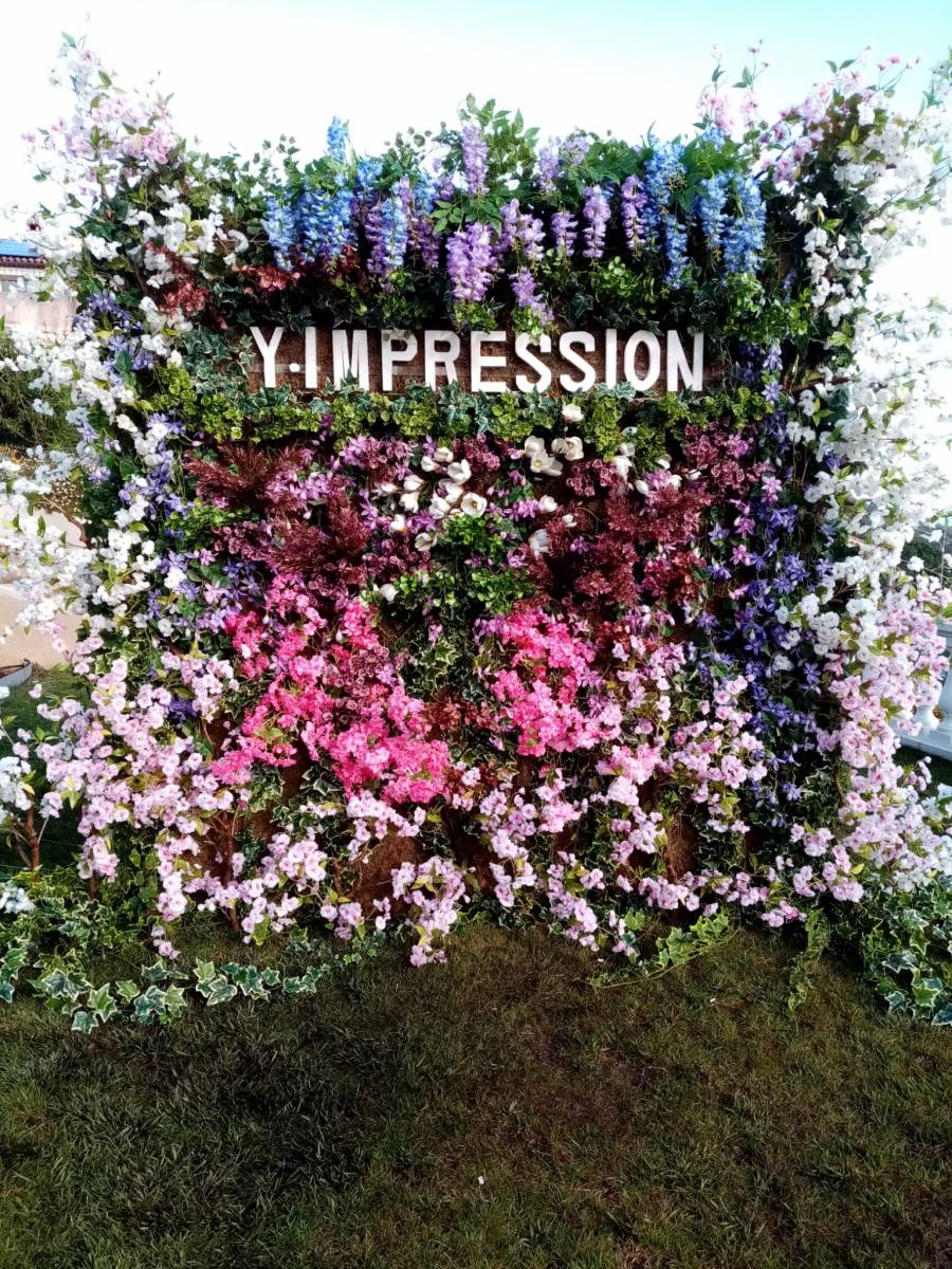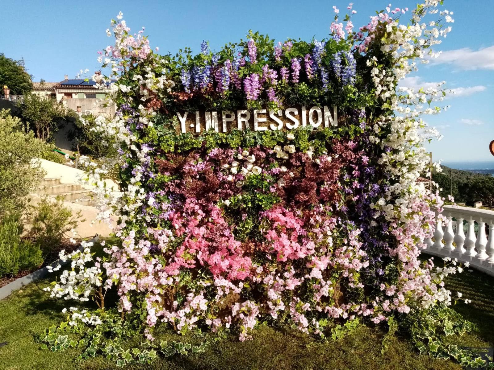 Un lettrage spécial reprenant le nom Y.IMPRESSION a été conçu scénographe floral Philippe Grossel.