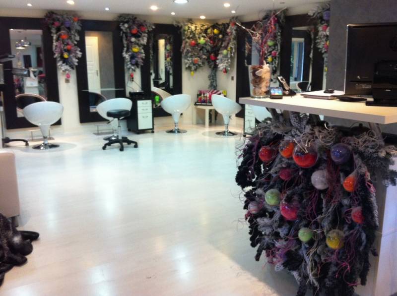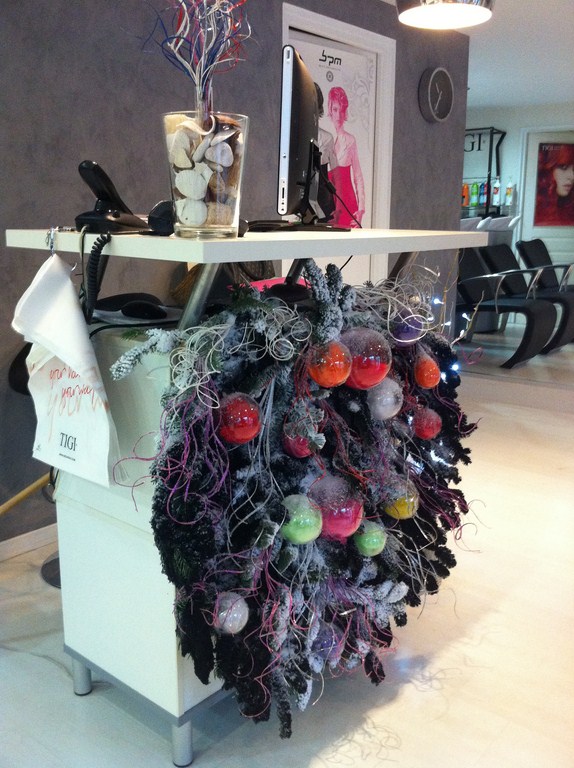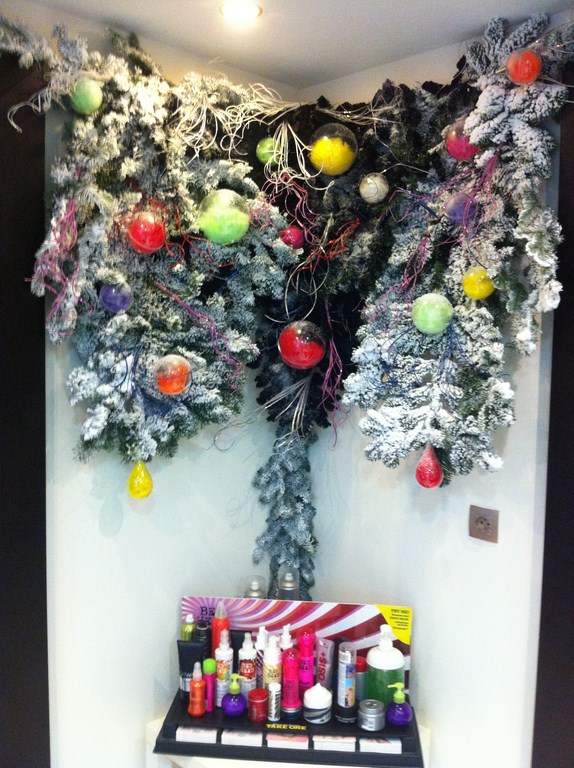 Un salon coiffure styliste visagiste a confié à Clorofil Events la décoration de noel de l'intérieur du salon de Vitrolles.