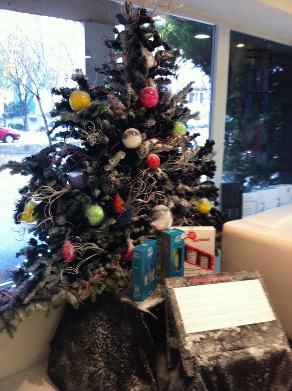 Cette décoration de noel est basée sur la relation entre les formes et les couleurs du logo et le concept du salon.